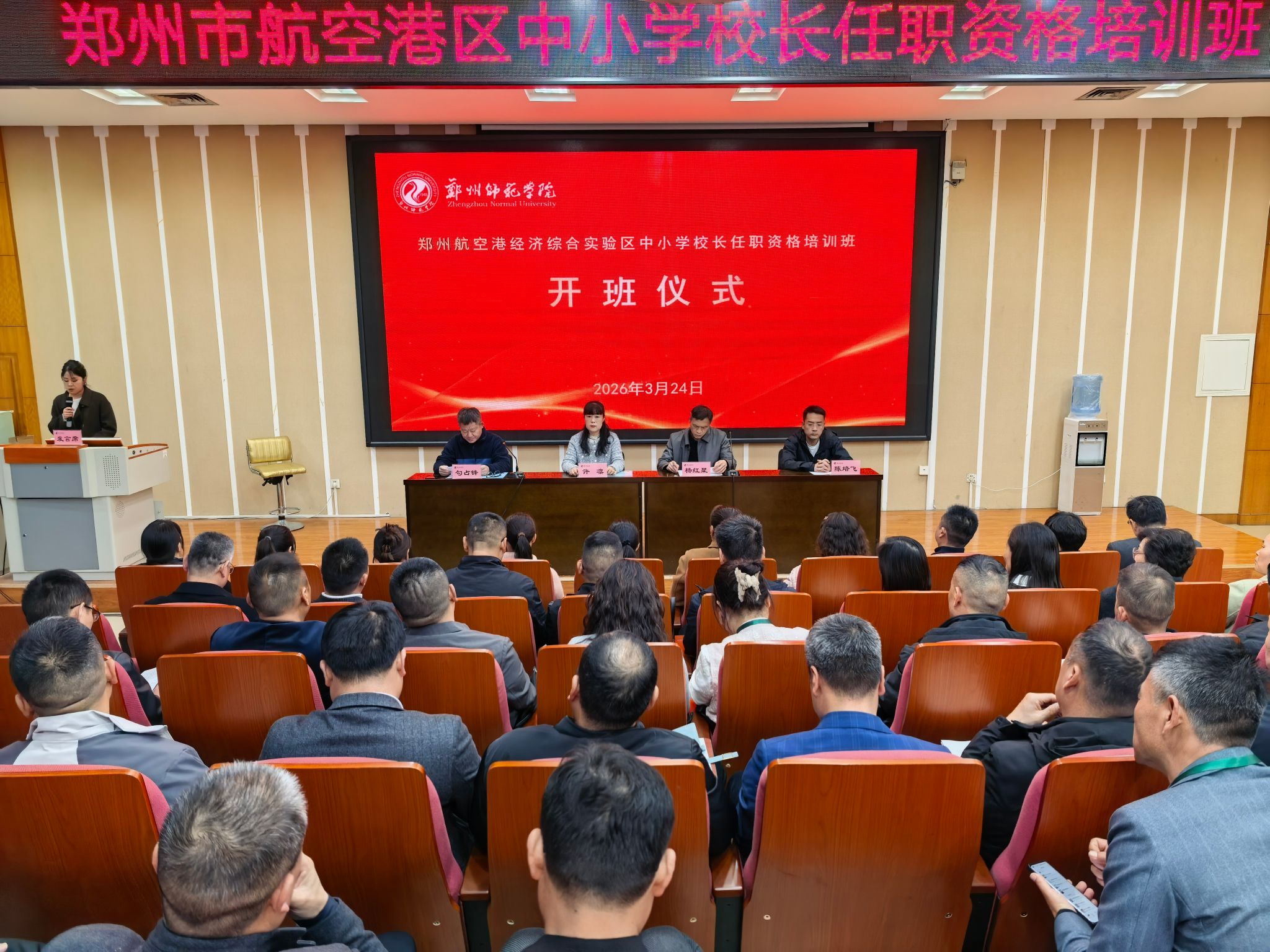 3月24日下午,郑州航空港经济综合实验区中小学校长任职资格培训班开班仪式在我校隆重举行。来自航空港区各中小学的校长齐聚一堂,共同开启专业研修之旅。郑州航空港经济综合实验区教育卫生体育局副局长杨红星、人...