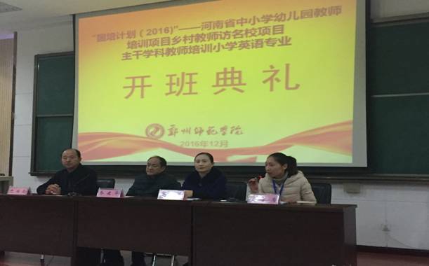 12月13日上午,由我校承办的“国培计划(2016)”——河南省乡村教师访名校项目主干学科教师培训小学英语专业在东校区经管楼报告厅顺利开班。郑州师范学院继续教育学院党总支书记巴继伦、继续教育学院院长乔建华、外国语学院院长马莉以及来自全省的100名英语教师参加了开班典礼,开班典礼由继续教育学院巴继伦书记主持。
