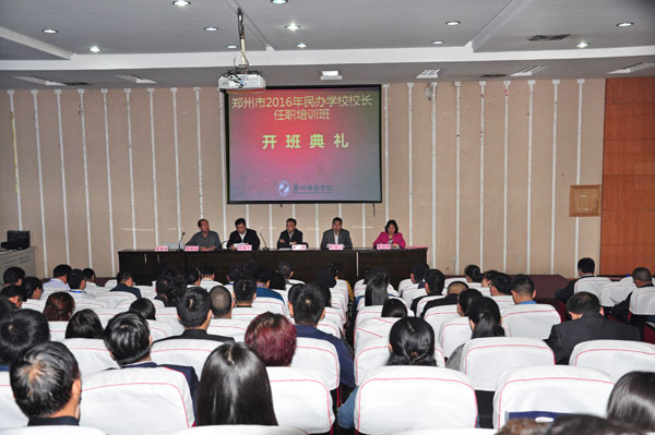 开学典礼由巴继伦书记主持。贾敏仁副校长代表师院致欢迎辞。贾校长向学员们介绍了郑州师院的基本情况,和继续教育学院近几年的培训情况。要求进一步发挥我院培训优优势,围绕郑州市教育发展和改革的需要,以提高培训质量为主线,以服务科学发展、干部成长为目的,积极改革创新;结合民办教育的现状和实际需要,设计培训方案,增强培训的针对性和实效性,为郑州市民办教育健康快速发展提供人才保证。张少亮副局长在开学典礼上做了重要讲话,他要求全体学员充分认识学习培训的重要性,准确把握学习重点,努力完成培训任务,在校学习期间要做到以下三点:1、转变角色,调整心态;2、积极参与、学会分享;3、结合实际,提升自我。来自郑州市新华中等专业学校校长吴凤霞,代表学员做了发言。珍惜这次学习机会,处理好工学矛盾,认真学习、主动交流,努力完成本次培训任务,提升办学能力、提高自我修养。
