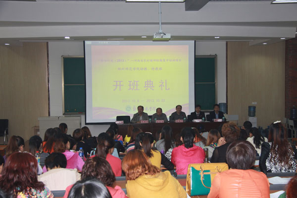 10月9日上午,“国培计划(2013)”—河南省农村教师短期集中培训项目幼儿转岗、特殊教育教师培训开班典礼在我校东校区经管楼一楼报告厅举行。郑州师范学院特殊教育学院杜志强院长、教育科学学院陈国维院长、继续教育学院乔建华院长、黄光副院长以及来自全省的百余名教师出席了开班典礼,典礼由继续教育学院党总支书记巴继伦主持。