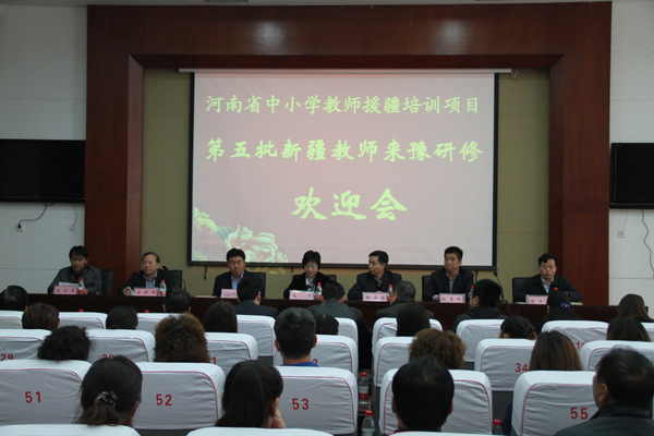 4月2日下午,“河南省中小学教师援疆培训项目”第五批新疆教师来豫研修欢迎大会在图书馆10楼报告厅召开。河南省教育厅师范处副处长杨永盛、郑州市教育局局长毛杰、副局长曾昭传、哈密地区教育局副局长别德力•阿合买提、我院副院长赵玉岭以及十三个项目学校领导和四十六位来豫新疆教师参加了大会。